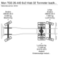 EN: Airconditioning, Air suspension rear, Anti-lock braking system, Central armrest, Coupling 50 mm, Cruise control, EBS, Electrically operated windows, Heater, Liftable and steering axle, Power take-off, Radio/CD player, Refrigerator, Remote control crane, Roof hatch, Spotlights, Toolbox, Visor, Warning lights