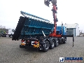 Palfinger PK 27001-EHD loading crane with grapple and rotator, 5 Hydraulic extensions, 2 support legs, Max loading capacity 5500 kg at 4.4m, 3600 kg at 6.3m, 2600 kg at 8.2m, 2000 kg at 10.3 m, 1600 kg at 12.4 m, 1340 kg at 14.5m // Jøni steel back and side tipper, Box dimensions: 600x250x110 cm, Bulk capacity aprox 16.5 m3 // Truck 8x2, Adblue, Euro 5, Automatic gearbox, Full air suspension, 2nd and 4th axle steering axles, 2th axle lifting axle, Hitch, Day cabin, Airconditioning, Digital tachograph, Shipment dimensions: 970x255x365 cm