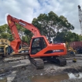 Doosan DH150LC-7 Crawler Excavator Specifications 1. Basic Information • Model: DH150LC-7 • Class: 15-ton class medium crawler excavator • Operating Weight: 13,900 kg • Standard Bucket Capacity: 0.57 m³ (0.28–0.75 m³ optional) • Boom / Arm Length: 4000/4600 mm × 1900/2500/3000 mm (multiple configurations) • Tail Swing Radius: 2200 mm • Ground Pressure: approx. 38 kPa • Gradeability: 70% (35°) 2. Engine • Model: Doosan DB58TIS • Type: Inline 6-cylinder, water-cooled, turbocharged, direct injection diesel engine • Rated Power: 71 kW @ 1850 rpm • Emission Standard: China Stage III (Tier 3) 3. Hydraulic System & Performance • Main Pump: 2 × variable displacement axial piston pumps • Max. Pump Flow: 2 × 116 L/min • System Pressure: 32.5 MPa (standard) / 34.3 MPa (boost) • Travel Speed: 3.4 / 4.9 km/h • Swing Speed: 12 rpm • Bucket Digging Force: 77.4 kN (standard) / 81.3 kN (boost) • Arm Digging Force: 57.8 kN (standard) / 62 kN (boost) • Max. Drawbar Pull: approx. 60 kN 4. Working Dimensions (Standard 4600/2500 mm) • Max. Digging Radius: 8260 mm • Max. Digging Depth: 5630 mm • Max. Digging Height: 8620 mm • Max. Dumping Height: 6200 mm • Max. Vertical Digging Depth: 5070 mm 5. Dimensions & Capacities • Shipping Dimensions (L×W×H): 7200 × 2490 × 2830 mm • Track Shoe Width: 600 mm • Track Gauge: 2600 mm • Min. Ground Clearance: approx. 350 mm • Fuel Tank Capacity: 280 L • Hydraulic Oil Tank: approx. 170 L • Engine Oil Capacity: approx. 16 L