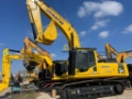 The Komatsu PC350-8 is a high-performance 35-ton heavy-duty hydraulic excavator, ideal for large-scale construction, mining, quarrying and infrastructure projects, renowned for its reliability, fuel efficiency and long service life. Powered by a Komatsu SAA6D114E-3 diesel engine with a rated output of 202 kW at 1800 rpm, it complies with EU Stage IIIA and EPA Tier 3 emission standards, delivering strong torque and stable performance while reducing fuel consumption. Equipped with an advanced electro-hydraulic control system (main pump flow 2×288 l/min, auxiliary hydraulic flow 140 l/min), it features two travel speeds (3.2 km/h low gear, 5.5 km/h high gear) and a swing speed of 9.3 rpm. With an operating weight of approximately 34,800 kg, standard bucket capacity of 1.6 m³ (1.4-1.8 m³ optional), and transport dimensions of 11000×3200×3450 mm for convenient relocation, it is equipped with an ergonomic cab, reinforced boom and arm, and centralized maintenance points to minimize downtime and ensure stable operation in harsh working conditions.