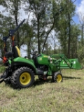 JOHN DEERE 1023E TRACTOR, AND LOADER. ADDITIONAL ATTACHMENTS INCLUDE DRIVE OVER AUTO CONNECT MOWER DECK, BUSH HOG, BOX BLADE, TILLER, GRAPPLE, ETC. 2 YEAR BUMPER TO BUMPER WARRANTY. 6 YEAR POWER TRAIN WARRANTY. 0% FINANCING AVAILABLE WITH APPROVED CREDIT. SHIPPING AVAILABLE. CALL/TEXT Dirk @ (904)-689-5878