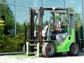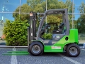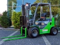Lekki terenowy wózek widłowy przystosowany do pracy w ogrodnictwie, rolnictwie i sadownictwie.
