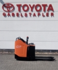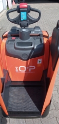 Plattform manuell hochklappbar, feste Seitenschutzwände mit schmalem Deichselgriff, Servolenkung, 10 km/h Version, Gabelrollen Einfach, Stützrad Einfach- Premium, Antriebsrad - Premium, PIN-Code