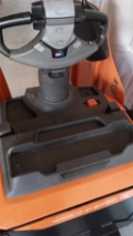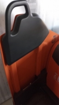 Plattform Kühlhaus, manuell hochklappbar; feste Seitenschutzwände mit kleiner Deichsel; Servolenkung, 8 km/h Version; Gleitschienen inkl. Kletterrolle; Gabelrollen Einfach, Stützrad doppelt; PIN-Code; Batterie Schnellverriegelung; blaues Warnlicht nach hinten gerichtet