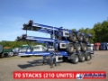 70 STACKS OF 3 UNITS EACH AVAILABLE, 210 UNITS TOTAL // Stack of 3 sliding container skeletal trailers, Suitable for 1 x 45 ft, 1 x 40 ft, 2 x 20 ft and 1 x 30 ft containers, Loading height 140 cm, Kingpin height 125 cm, Kingpin diameter 2 inches, ABS, SAF axles, Air suspension, Drum brakes, Shipment dimensions stack: 1100X250X400 cm (trailer in 30 ft position)