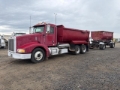 Cat C15 15.2 L Diesel 625 hp Engine, 7030.1 Engine hrs, Air Conditioner, Cruise Control, Power Windows, Engine Brake, Eaton Fuller RTX16709B 9-Speed Manual Transmission, 12000 lb Front Axle, 38000 lb Rears, Spicer DSP41P Drive Axles, 3.90:1 Axle Ratio, Air Ride Cab, 275/80R22.5 Front Tires, 445/50R22.5 Super Singles Rear Tires, Reyco Spring Suspension, 208 in Wheelbase, PTO, Red Dragon 15 ft Long x 4 ft High Steel Body, Round Bottom, Air High-Lift Tailgate, Pintle Hitch, SOLD WITH - 2086 Red Dragon T/A Transfer Trailer, Trailer S/N- 1UNSH20296C035057, Lunette Ring Hitch, Spring Suspension, Air Brakes, 11R22.5 Tires. to see more information.